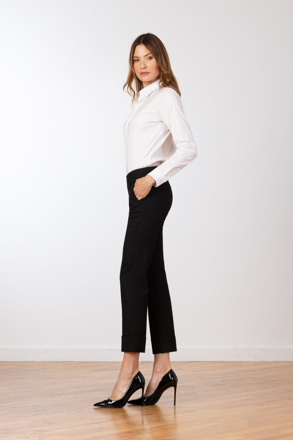 THE FIT: The BEN style is a straight leg, ankle-length, pull-on pant with side pockets and a cuff. Perfect to be worn conservatively for work or playfully for dinner.