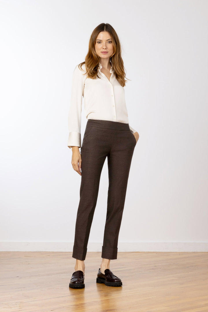 THE FIT: The BEN style is a straight leg, ankle-length, pull-on pant with side pockets and a cuff. Perfect to be worn conservatively for work or playfully for dinner.