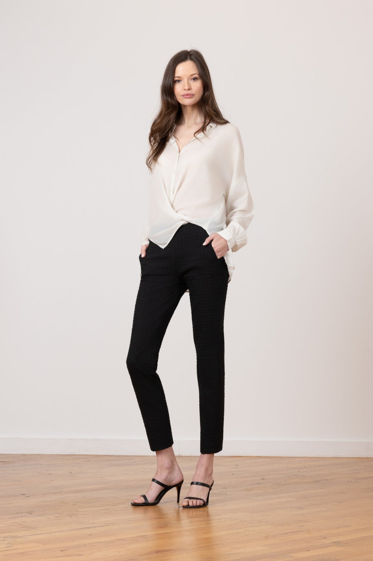 THE FIT: The BEN style is a straight leg, ankle-length, pull-on pant with side pockets and a cuff. Perfect to be worn conservatively for work or playfully for dinner