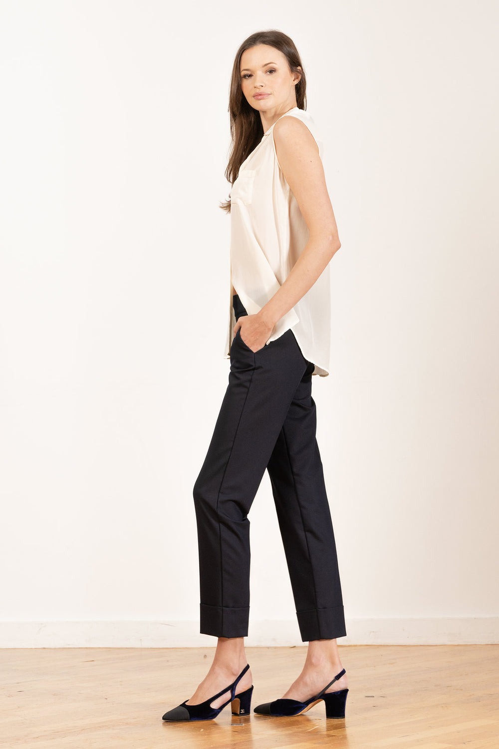THE FIT: The BEN style is a straight leg, ankle-length, pull-on pant with side pockets and a cuff. Perfect to be worn conservatively for work or playfully for dinner