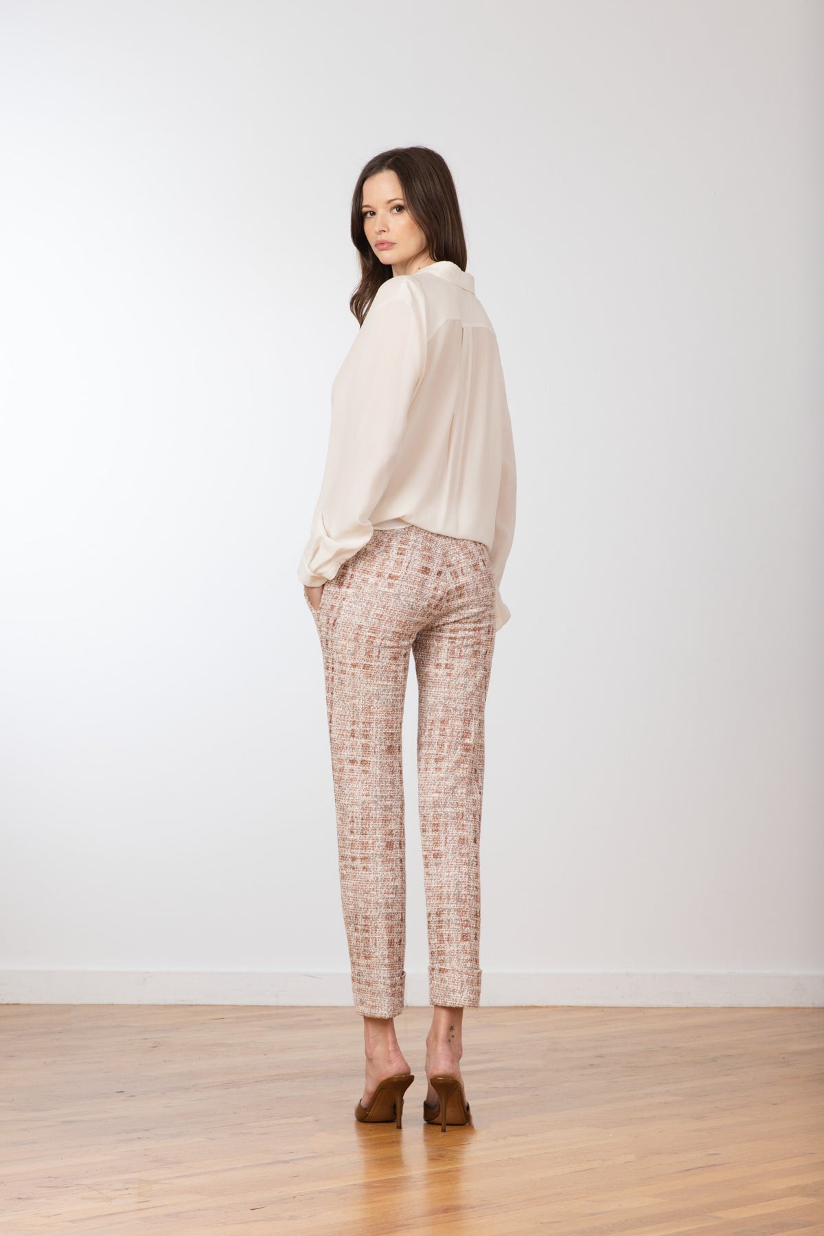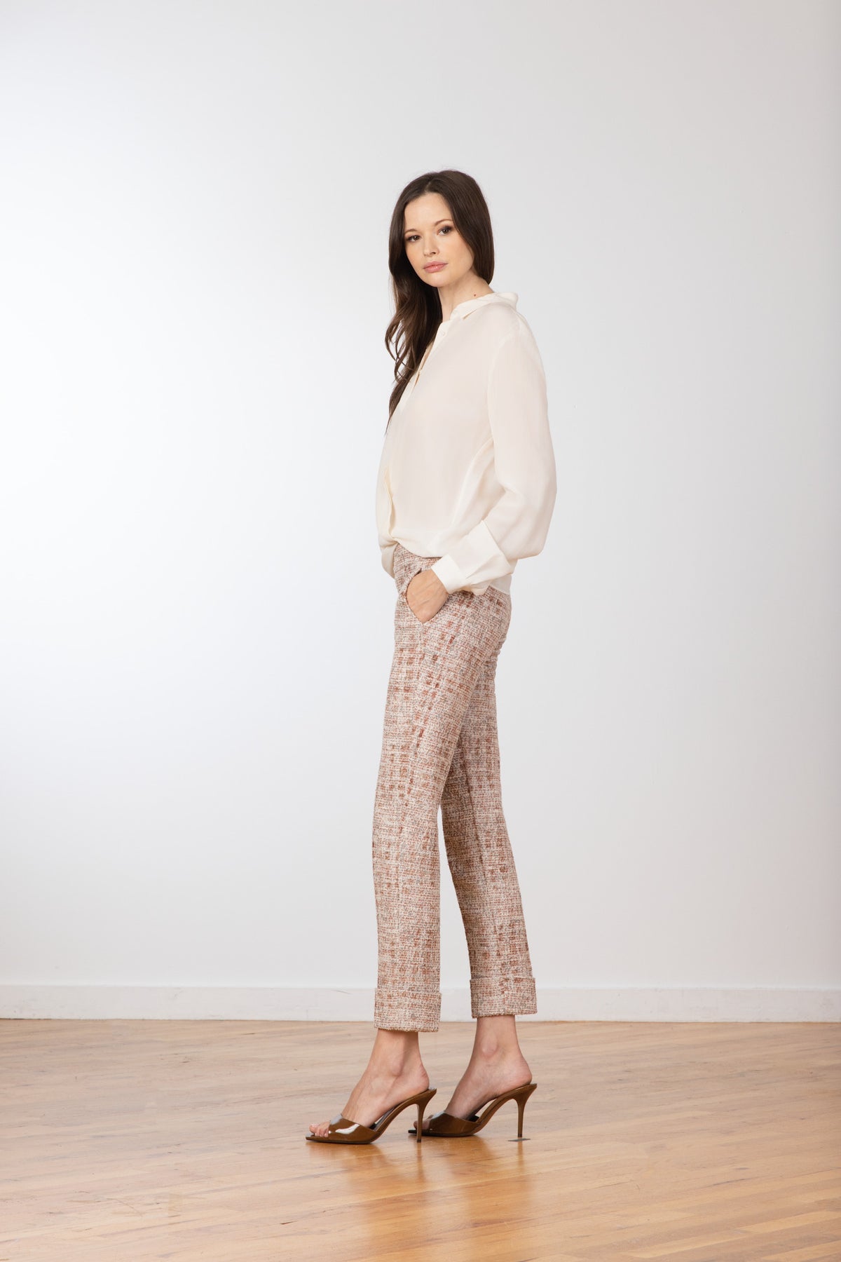 THE FIT: The BEN style is a straight leg, ankle-length, pull-on pant with side pockets and a cuff. Perfect to be worn conservatively for work or playfully for dinner.