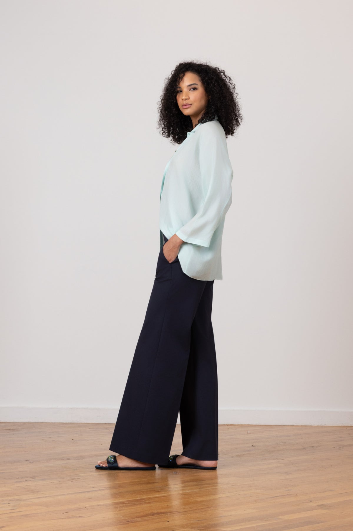 THE FIT: The CARLA style is a full length palazzo-style pant with pockets. Palazzo pants are supremely comfortable because of their wonderfully loose cut, which allows the legs to swirl around you as you walk and gives a graceful flare to your figure.