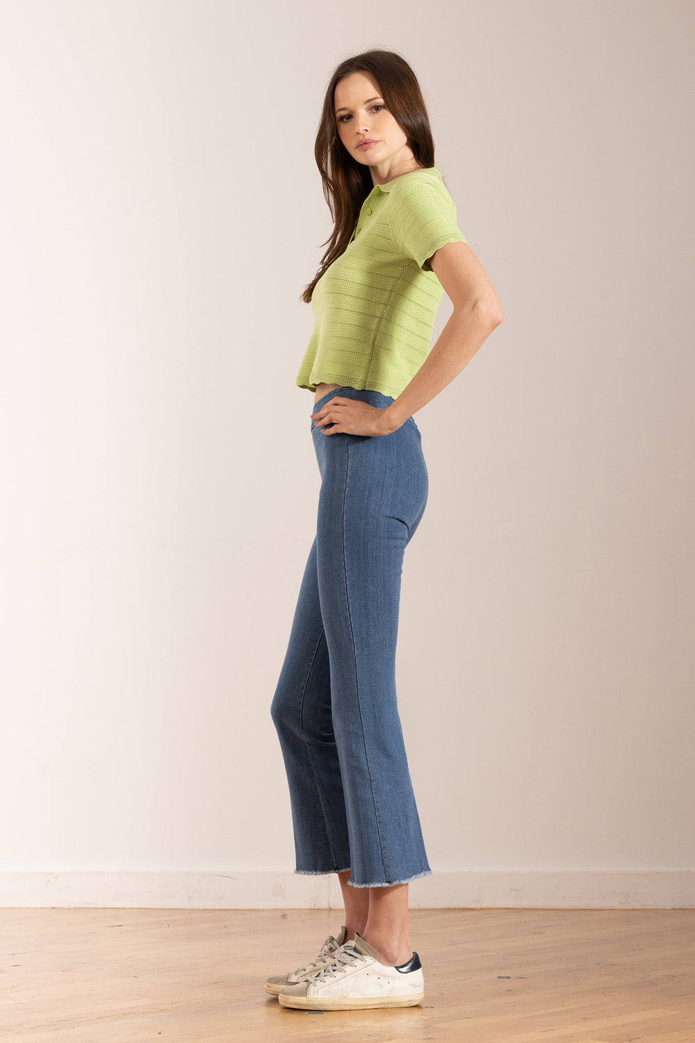 THE FIT: The LEO style is a cropped flare cut. They are very comfortable thanks to our stretch fabric and pull-on elasticated waistband. The Leo style can be worn with all types of shoes, from high heels to sneakers, loafers and boots.