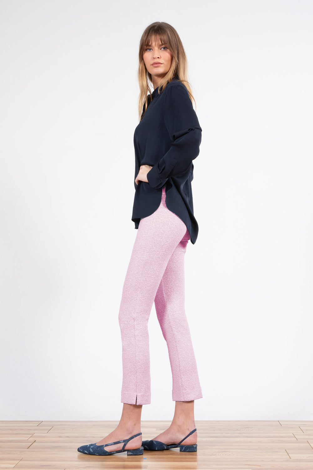THE FIT: The BRIGITTE style is a straight cropped pant with a side slit.