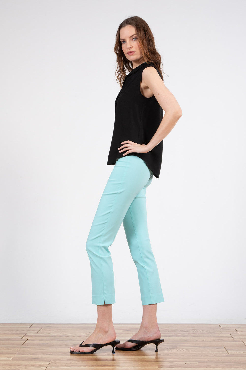 THE FIT: The BRIGITTE style is a straight cropped pant with a side slit.