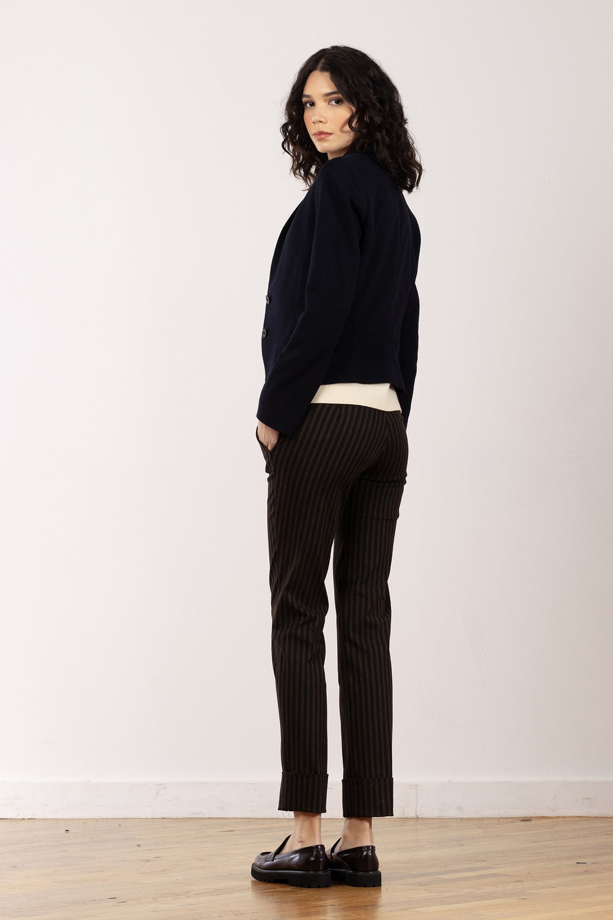 THE FIT: The BEN style is a straight leg, ankle-length, pull-on pant with side pockets and a cuff. Perfect to be worn conservatively for work or playfully for dinner.